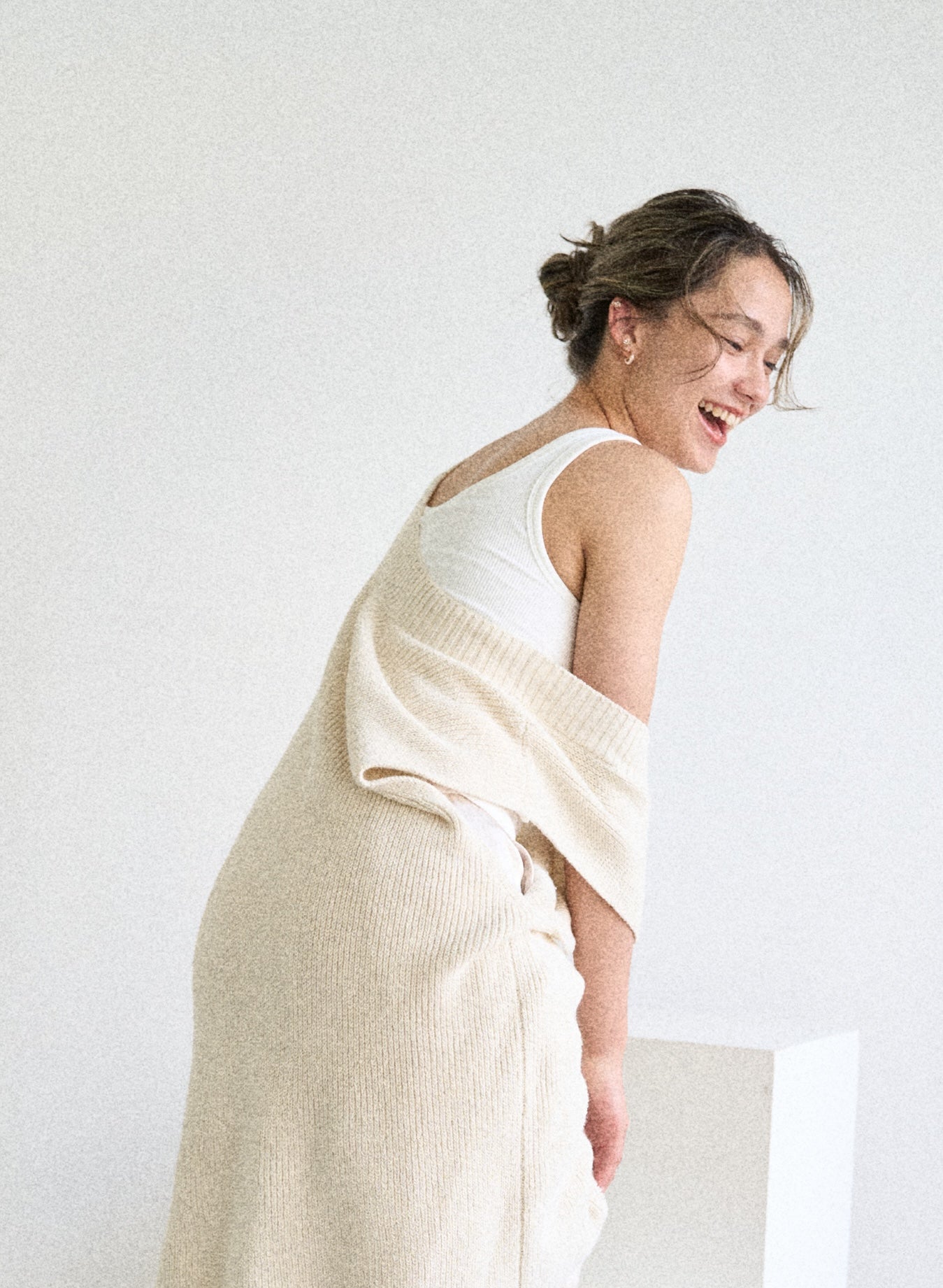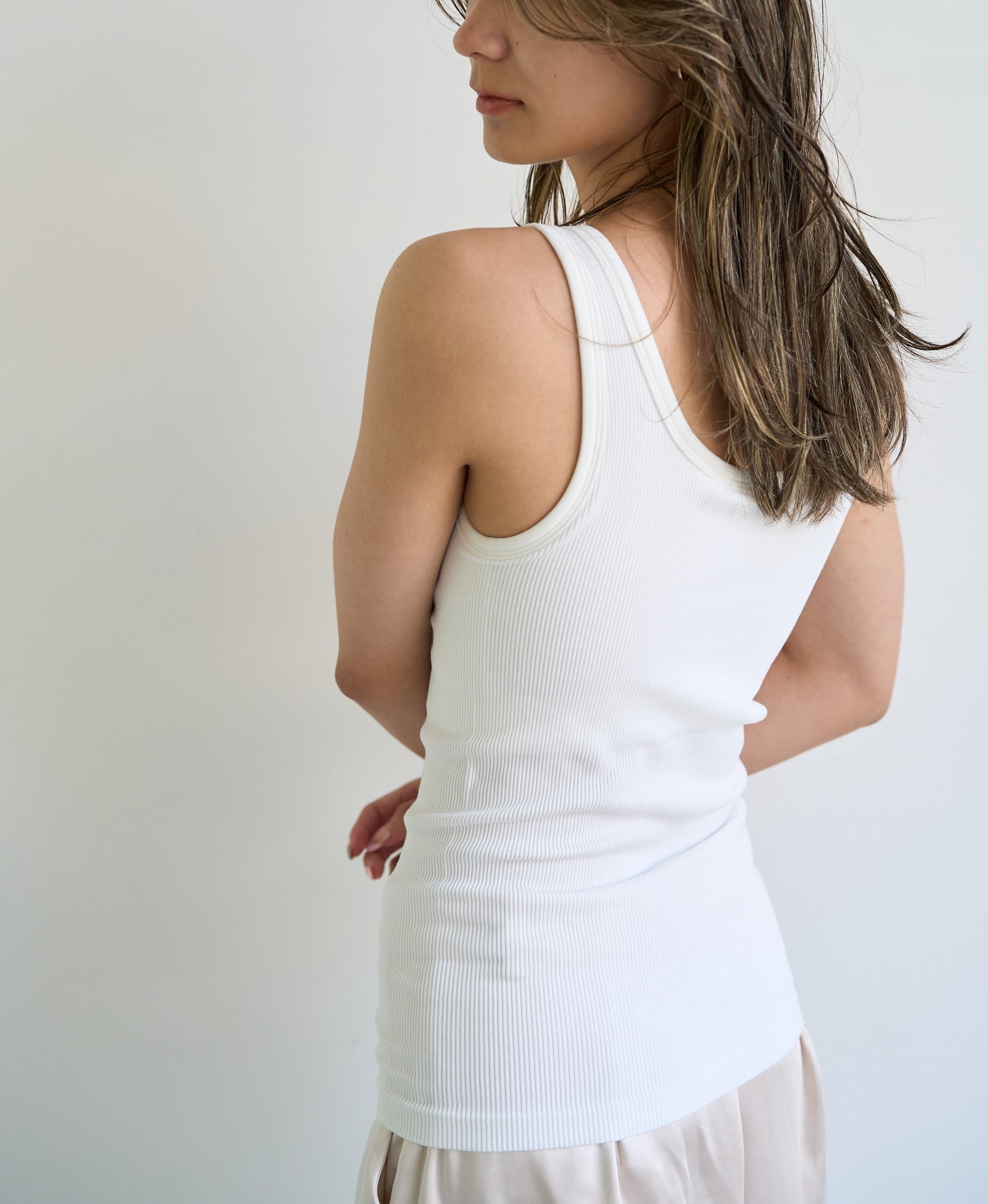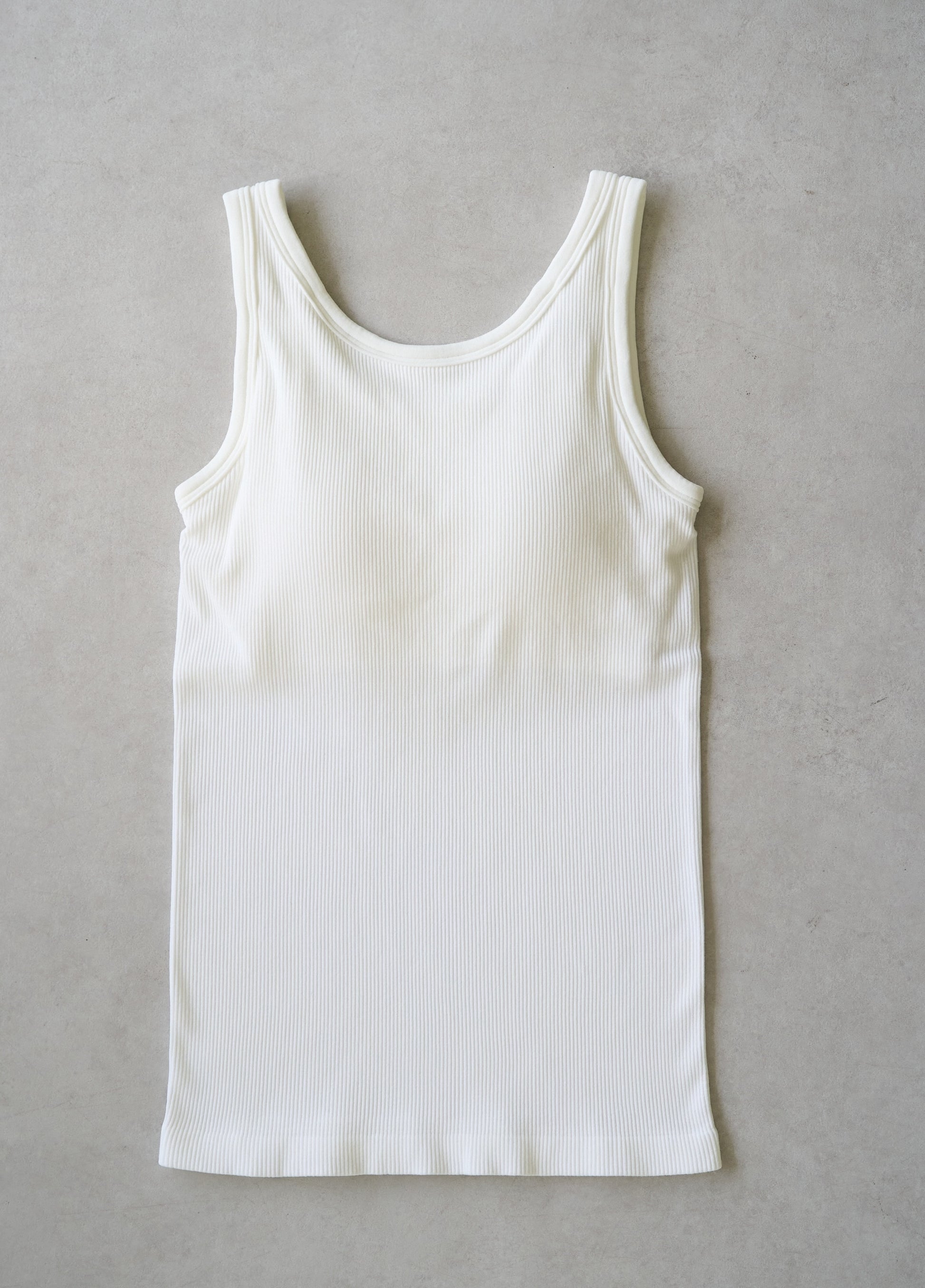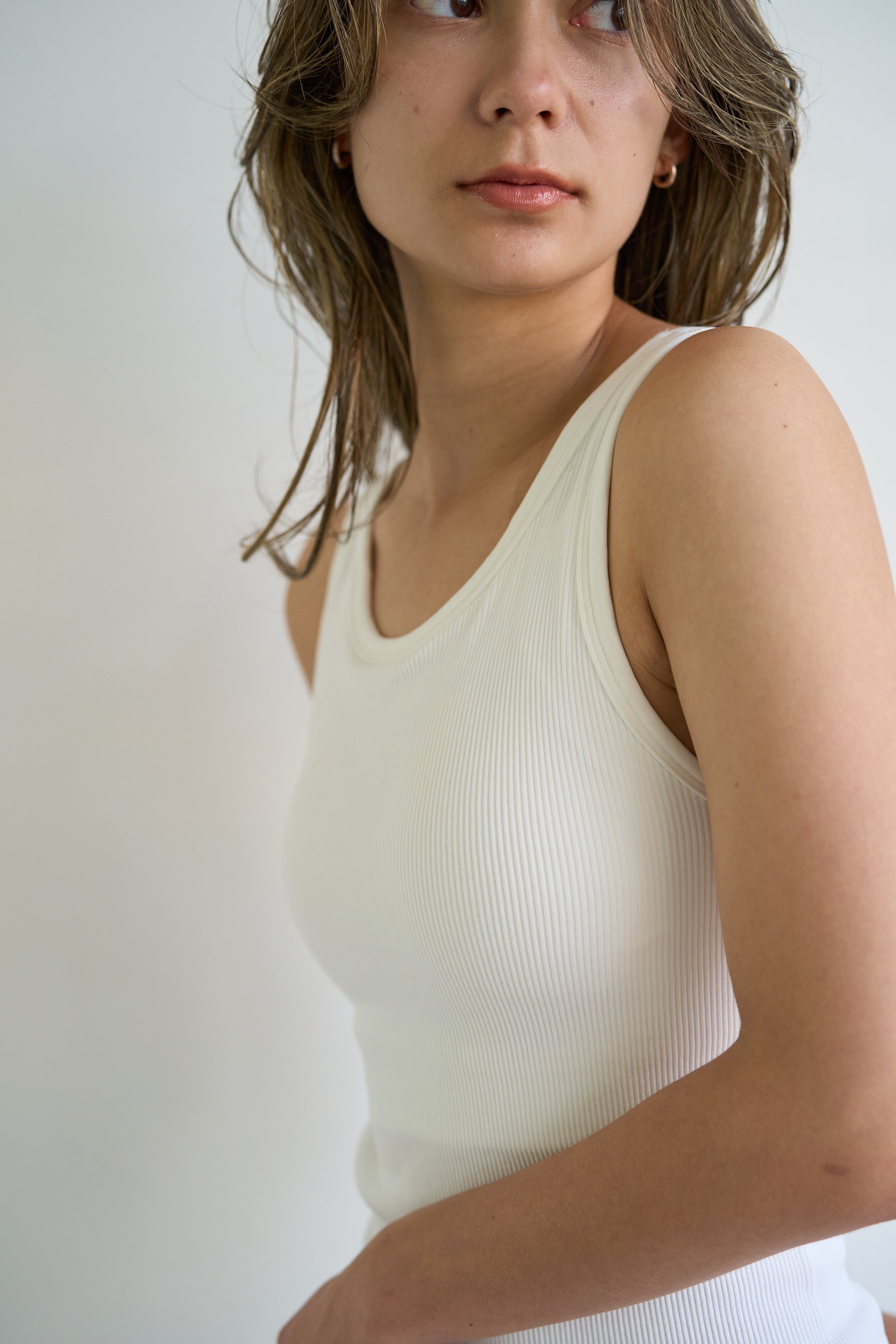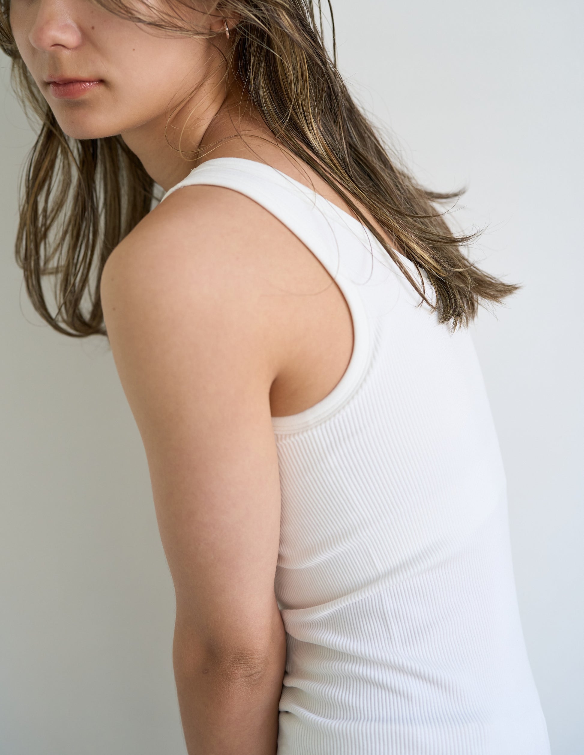 スタンダードよりも胸元のあきを狭くし、谷間が見えづらいシルエットに。脇や背中の空きも少し狭めました。