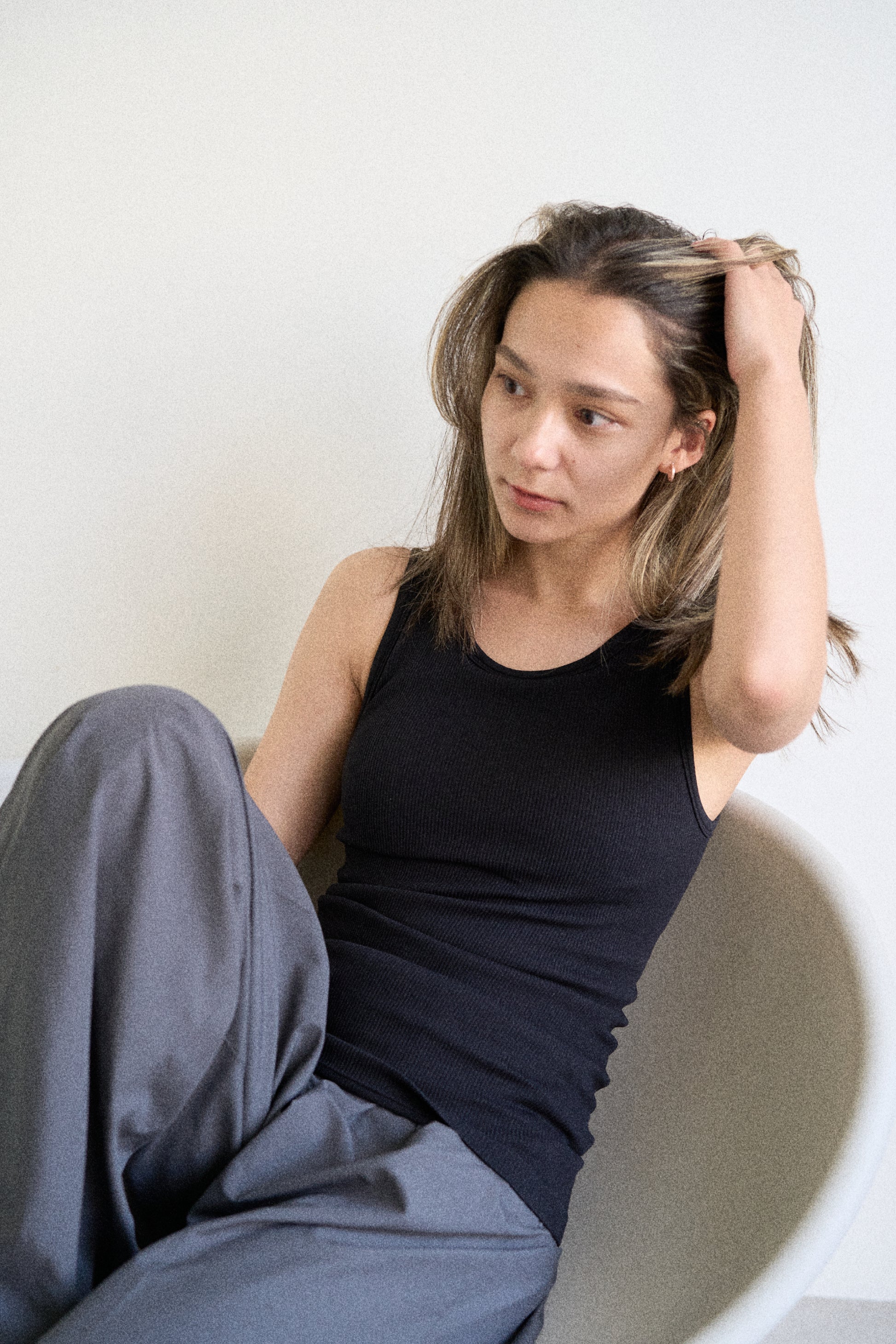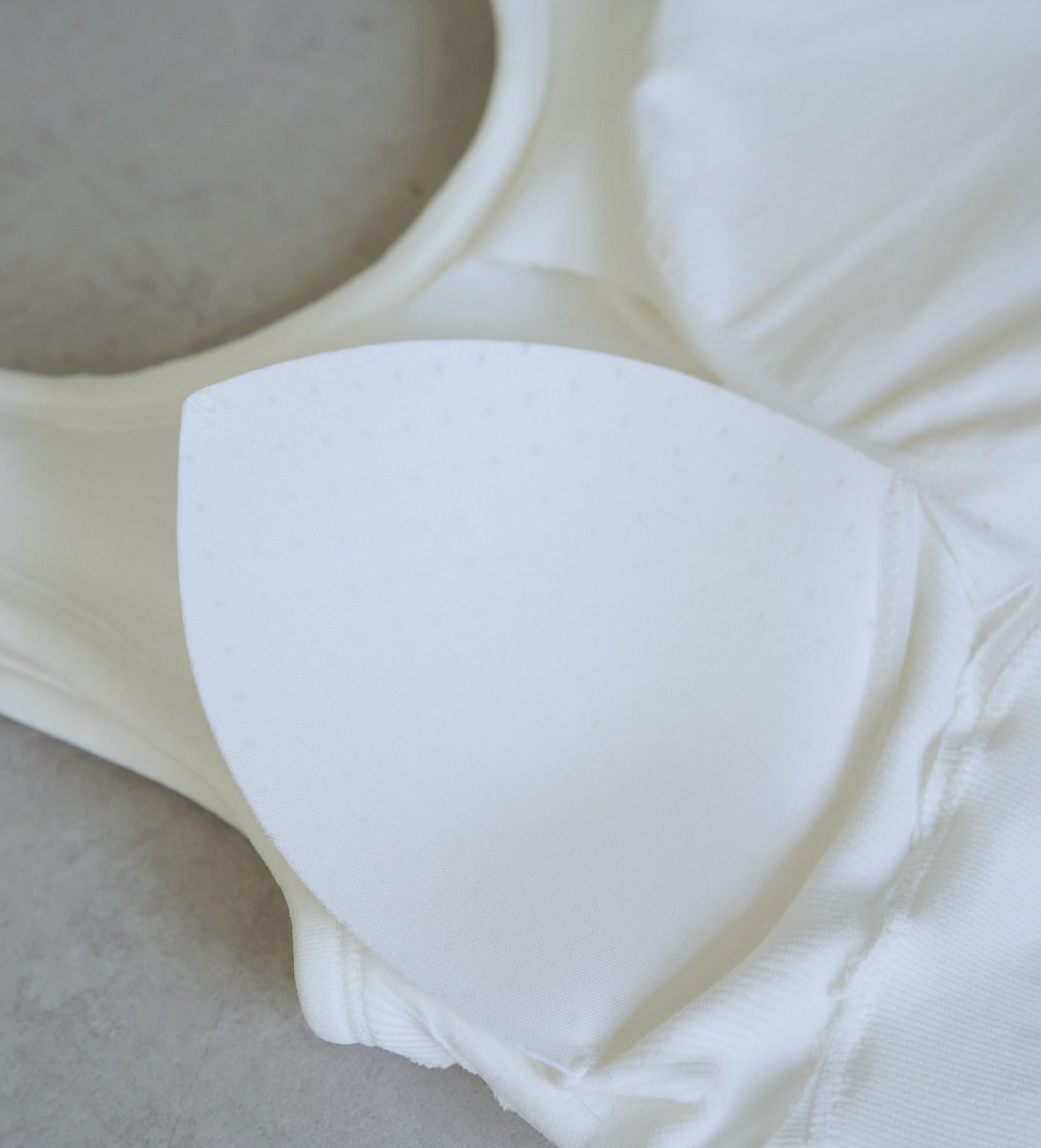 胸がしっかりホールドされるのに伸びが良いので痛みを感じづらく、柔らかくて気持ちの良い素材感。縫い目のない筒編みを採用しており、肌あたりにもこだわりました。