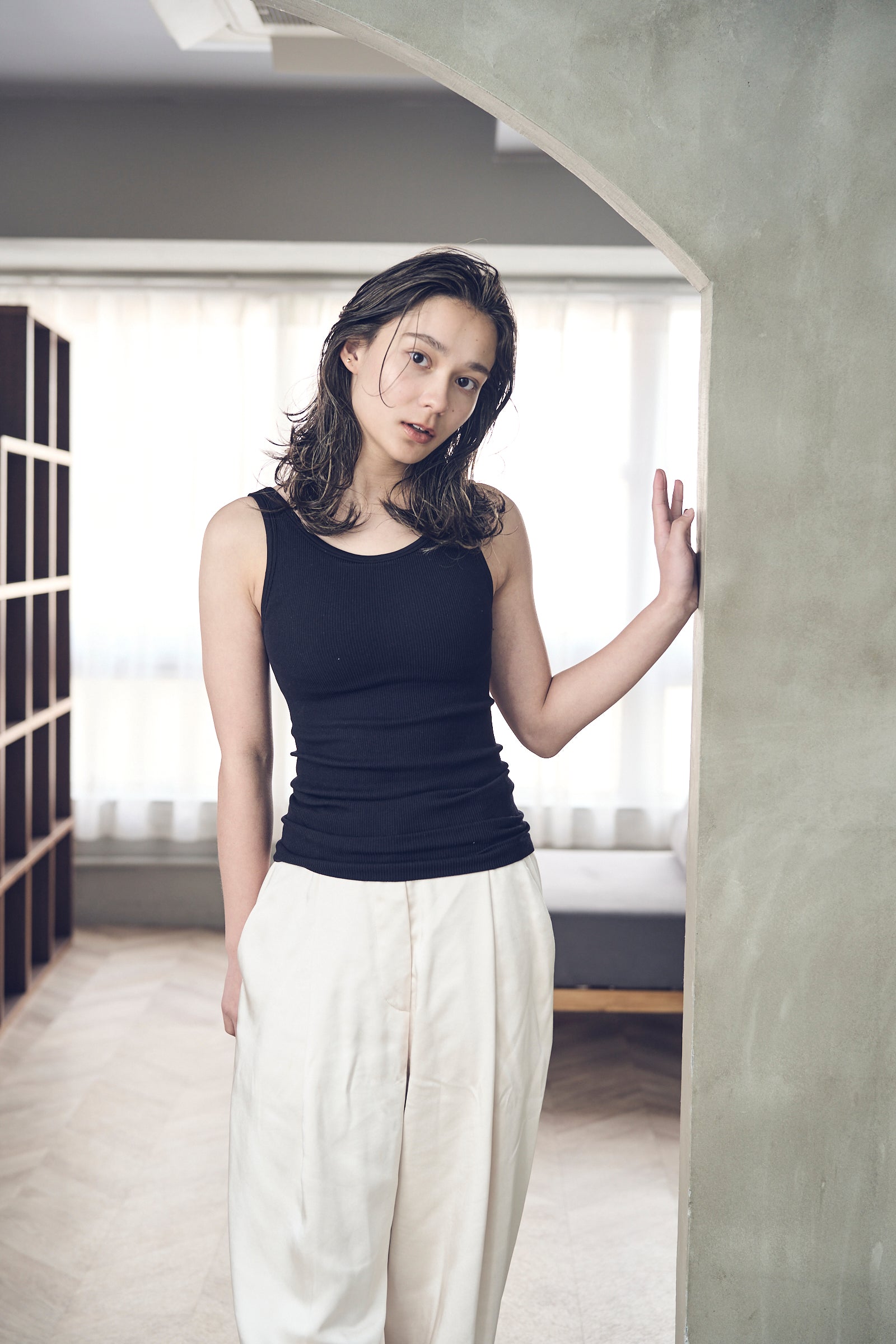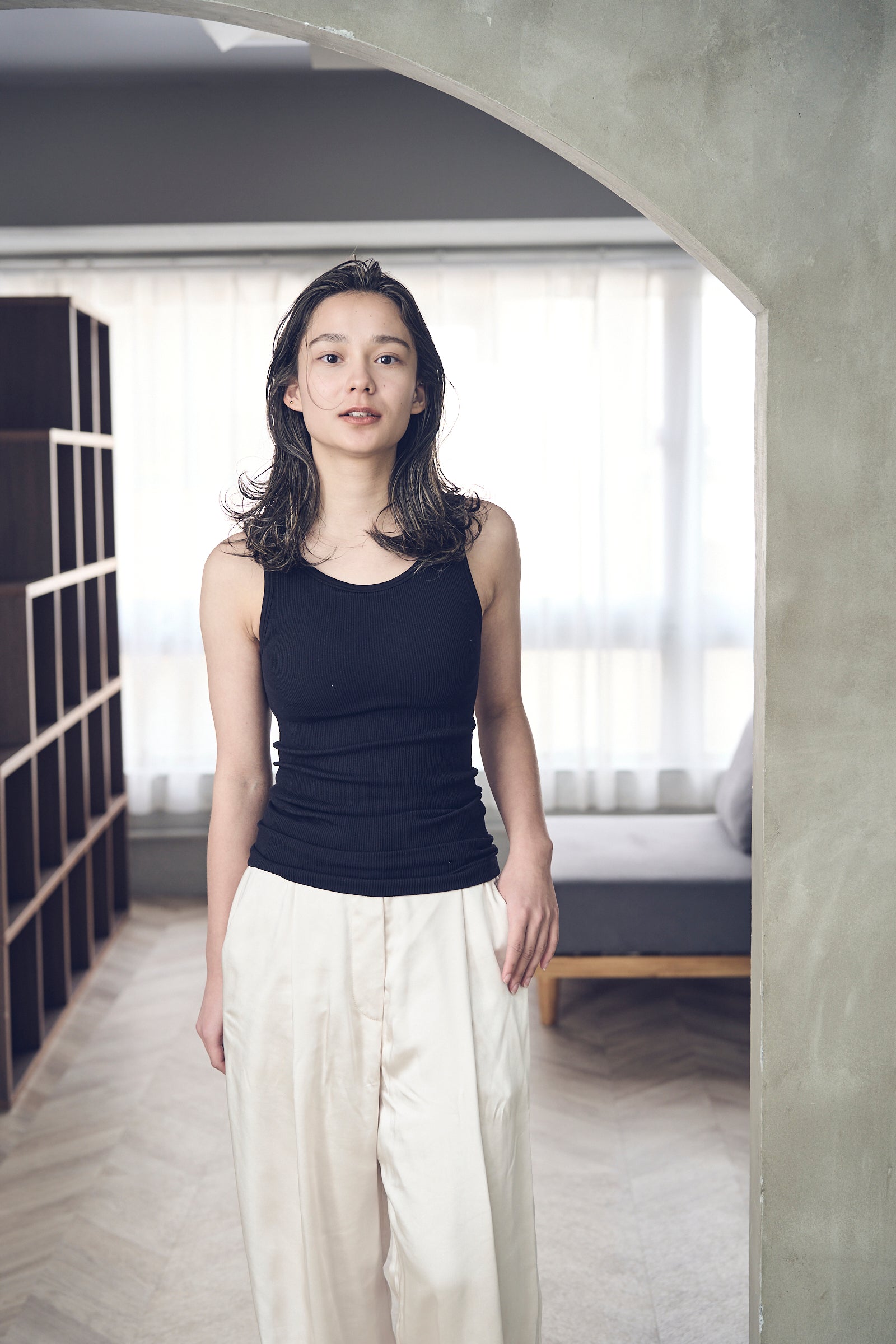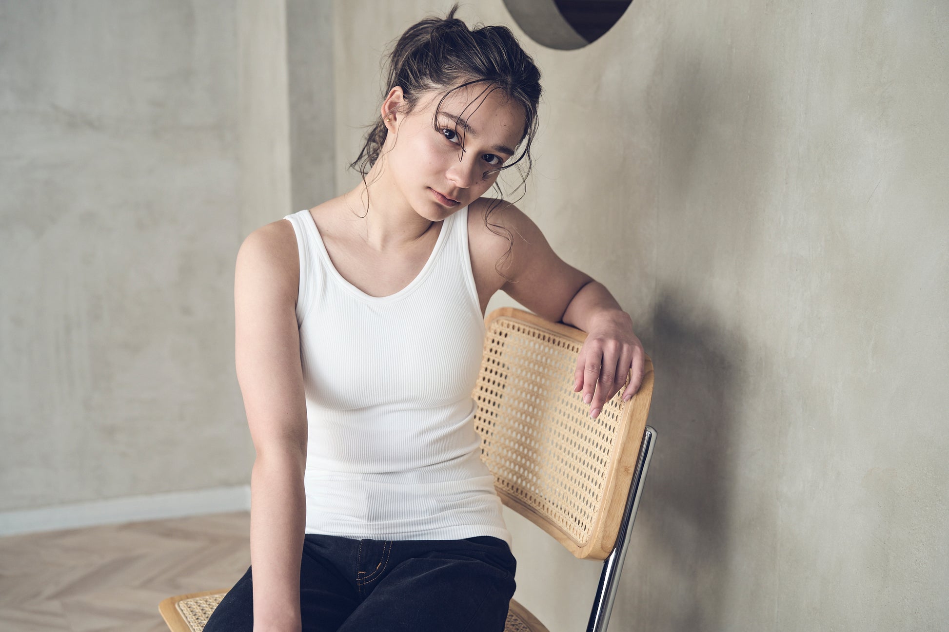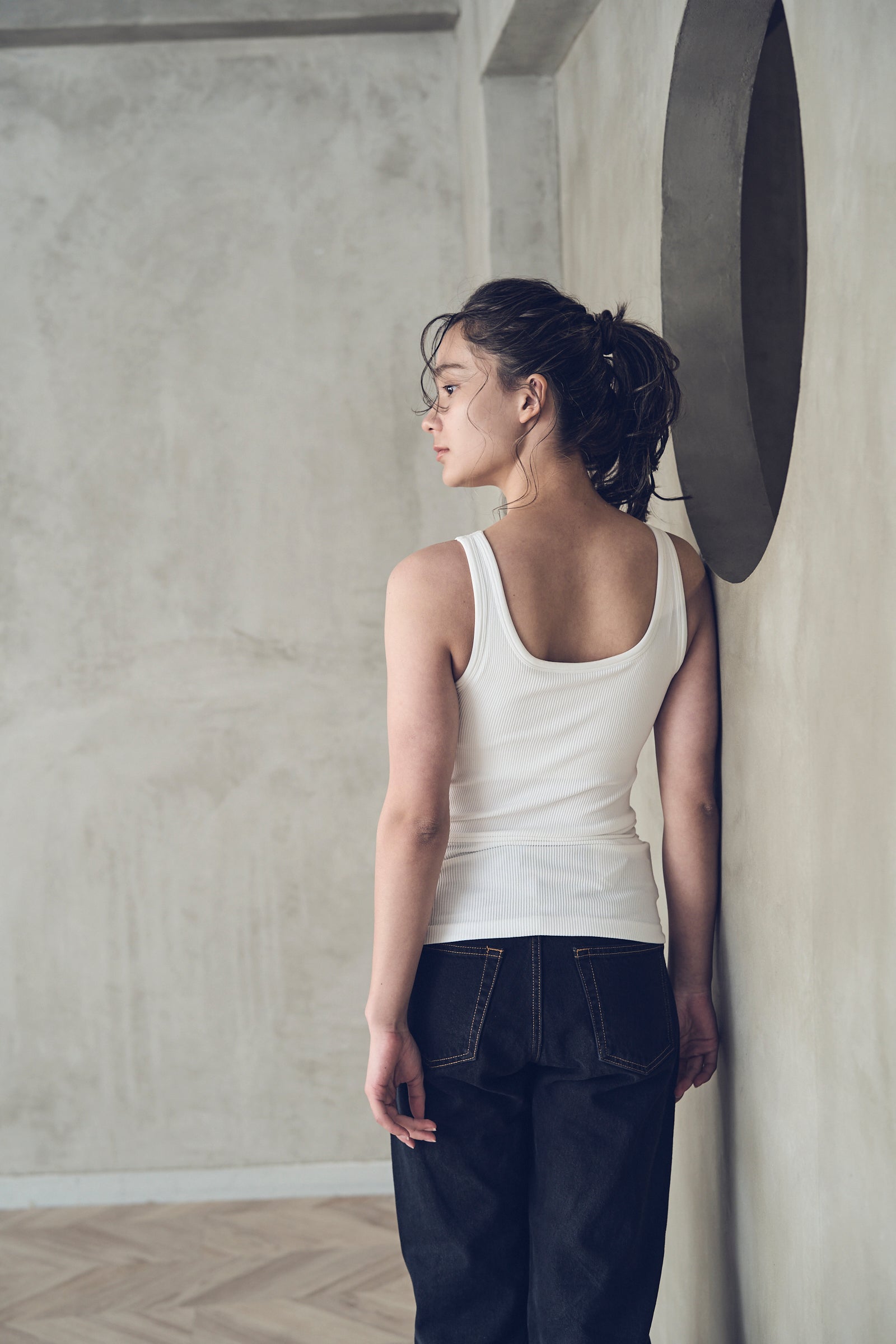 コットンを混ぜることで通気性を高めた、薄手で柔らかい手触り。胸をしっかりホールドするよう、スタンダードコットンタイプよりもゲージを太めに仕上げました。