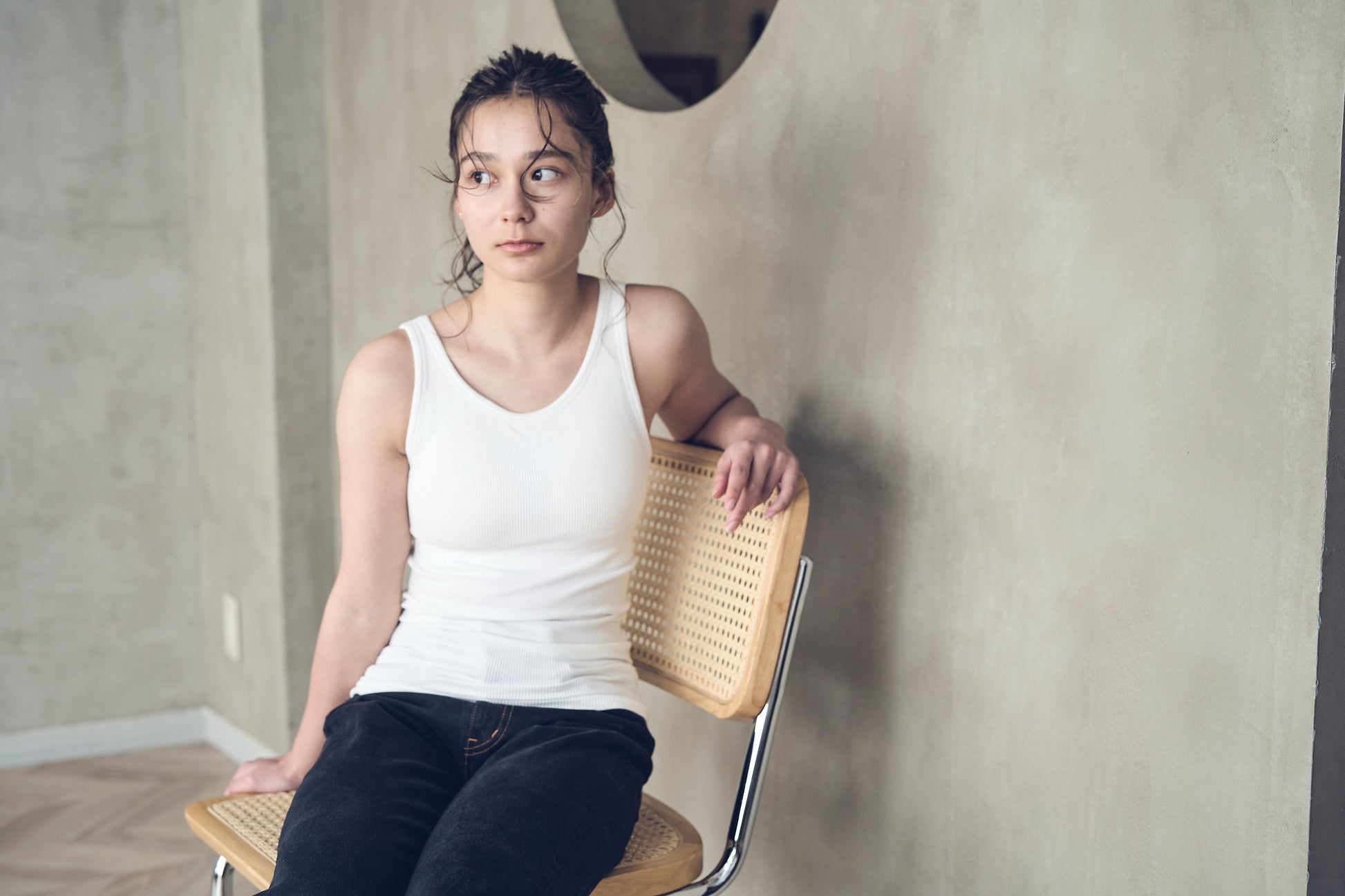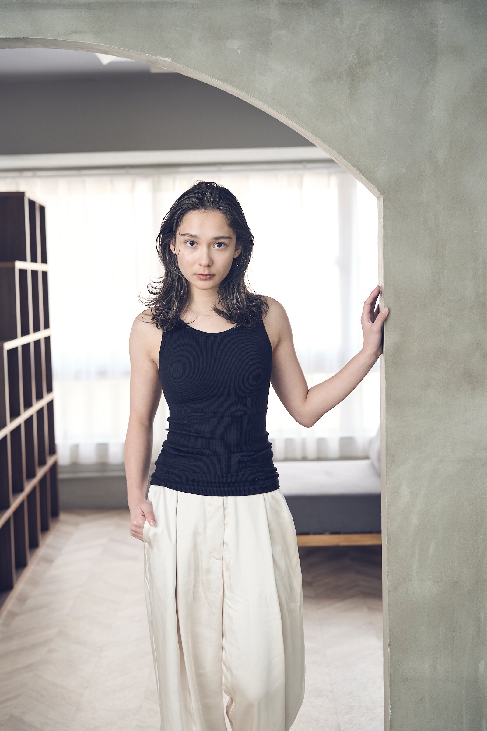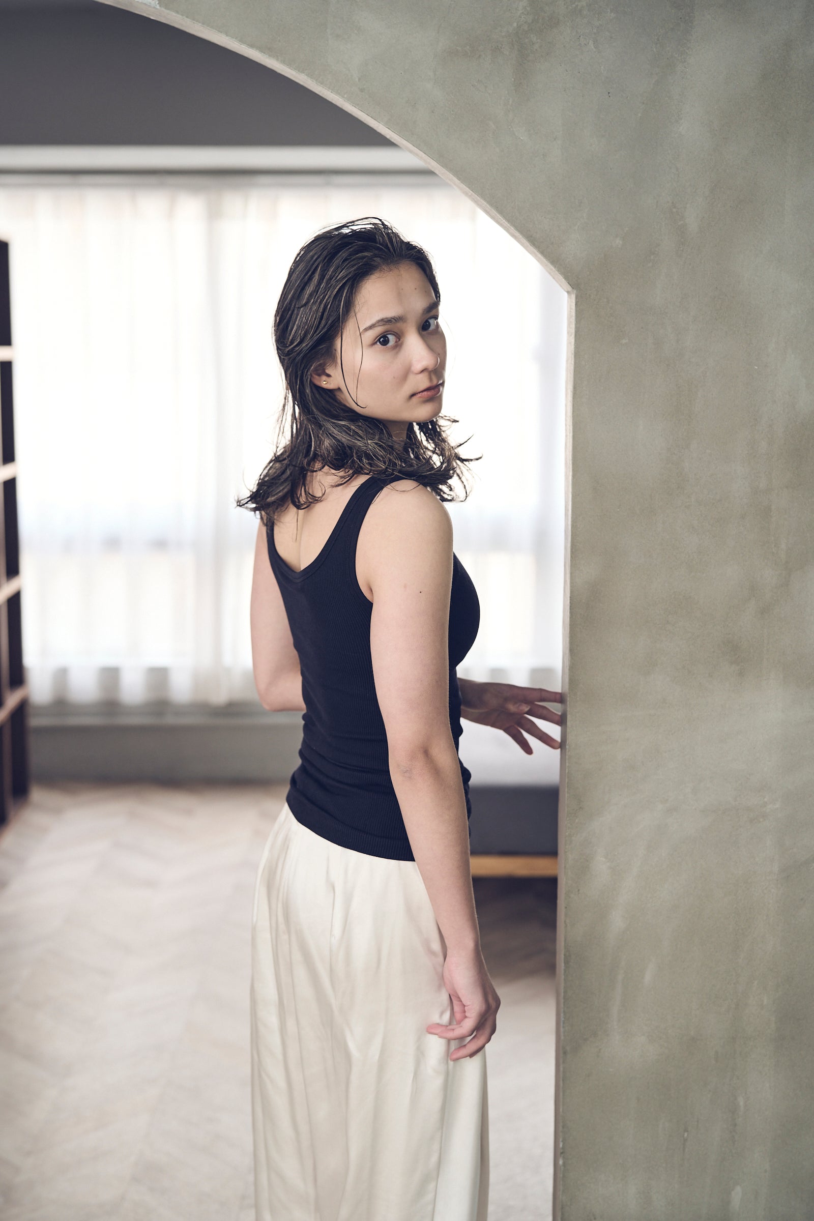 スタンダードよりも胸元のあきを狭くし、谷間が見えづらいシルエットに。脇や背中の空きも少し狭めました。