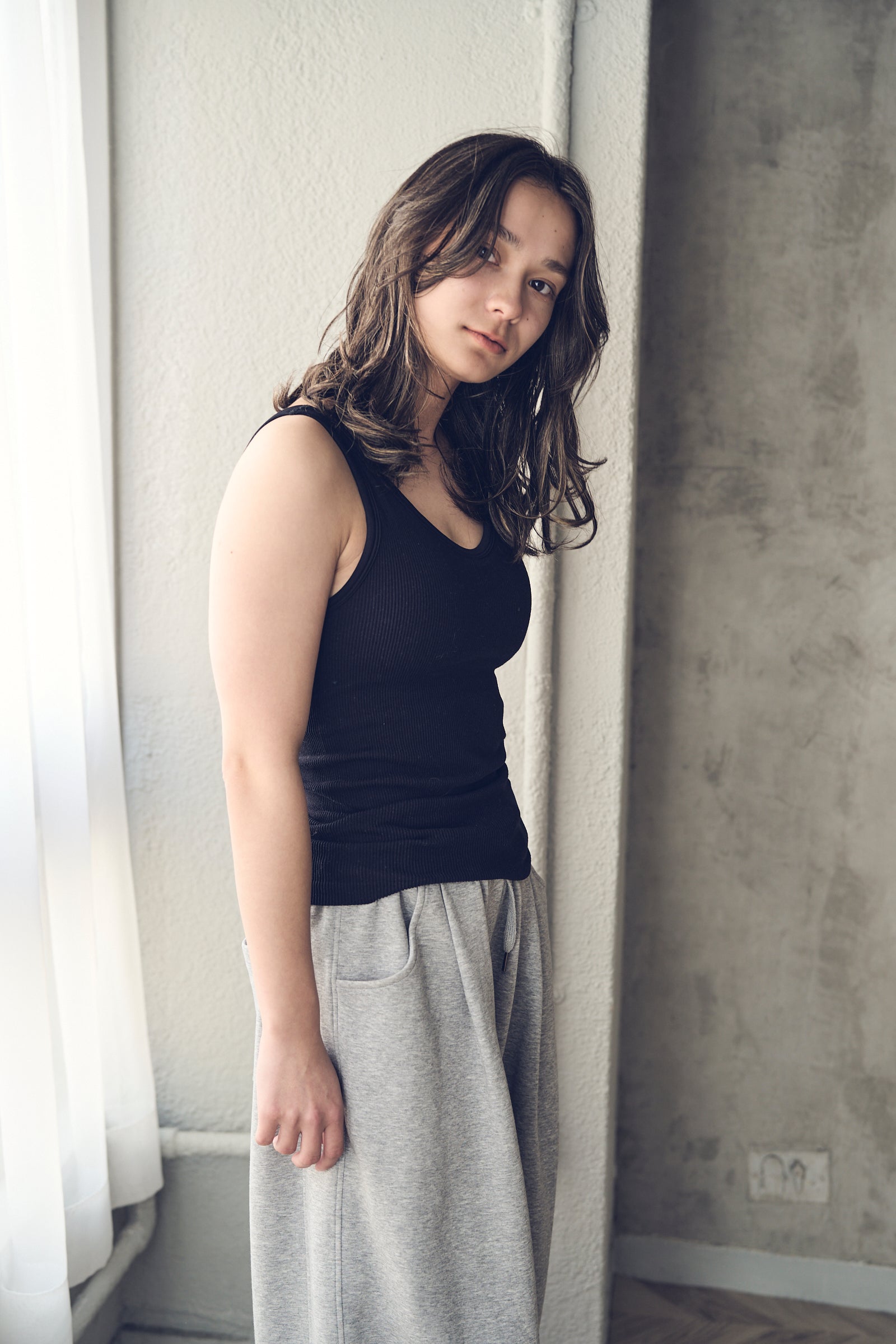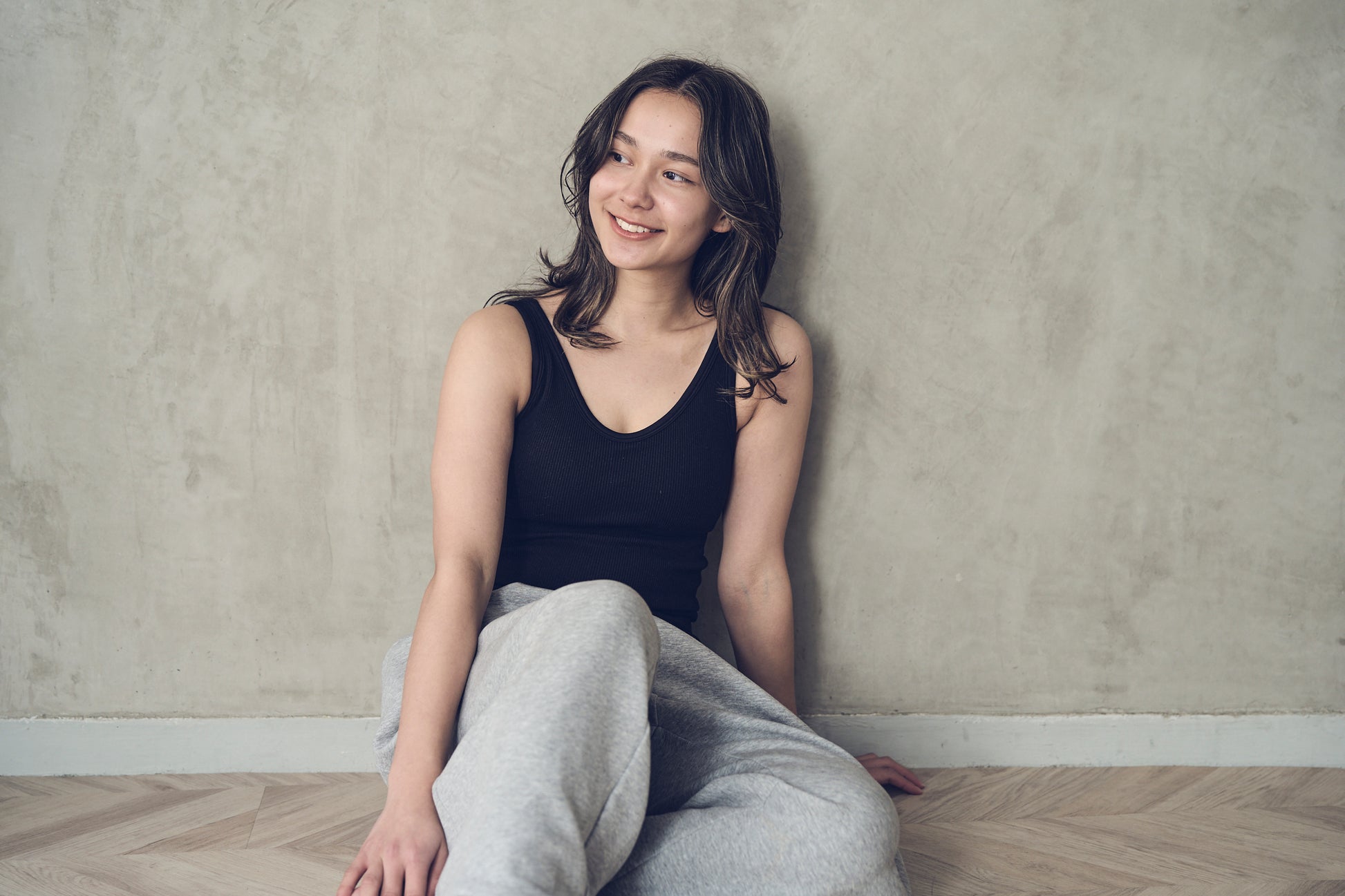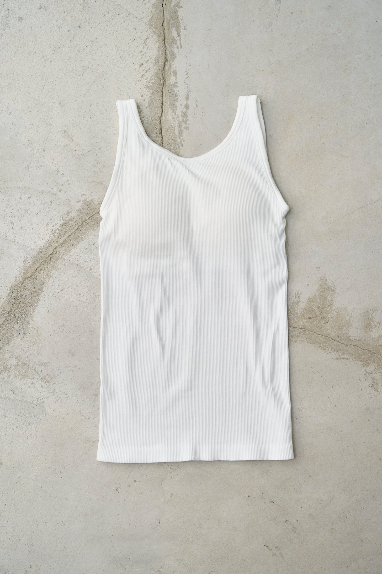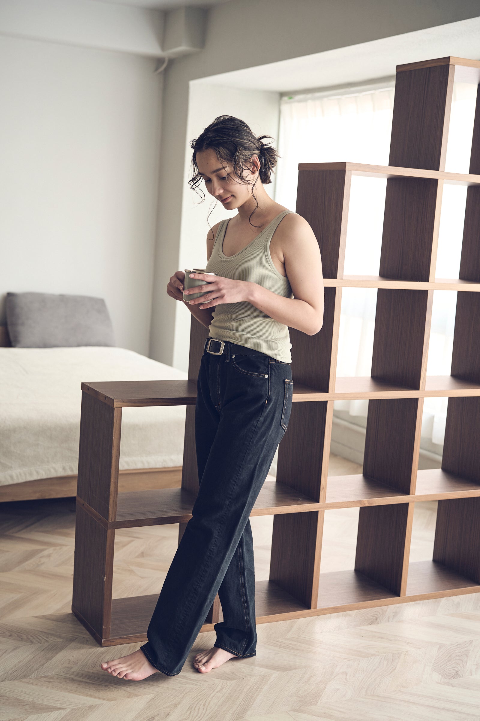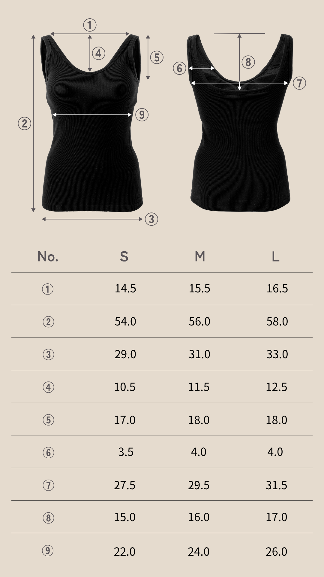 背中や胸元の空きを調整し、どんなお洋服にも合わせやすいバランスにこだわりました。インナー見えしないリブ編みなので、あえて見せて着用することも可能です