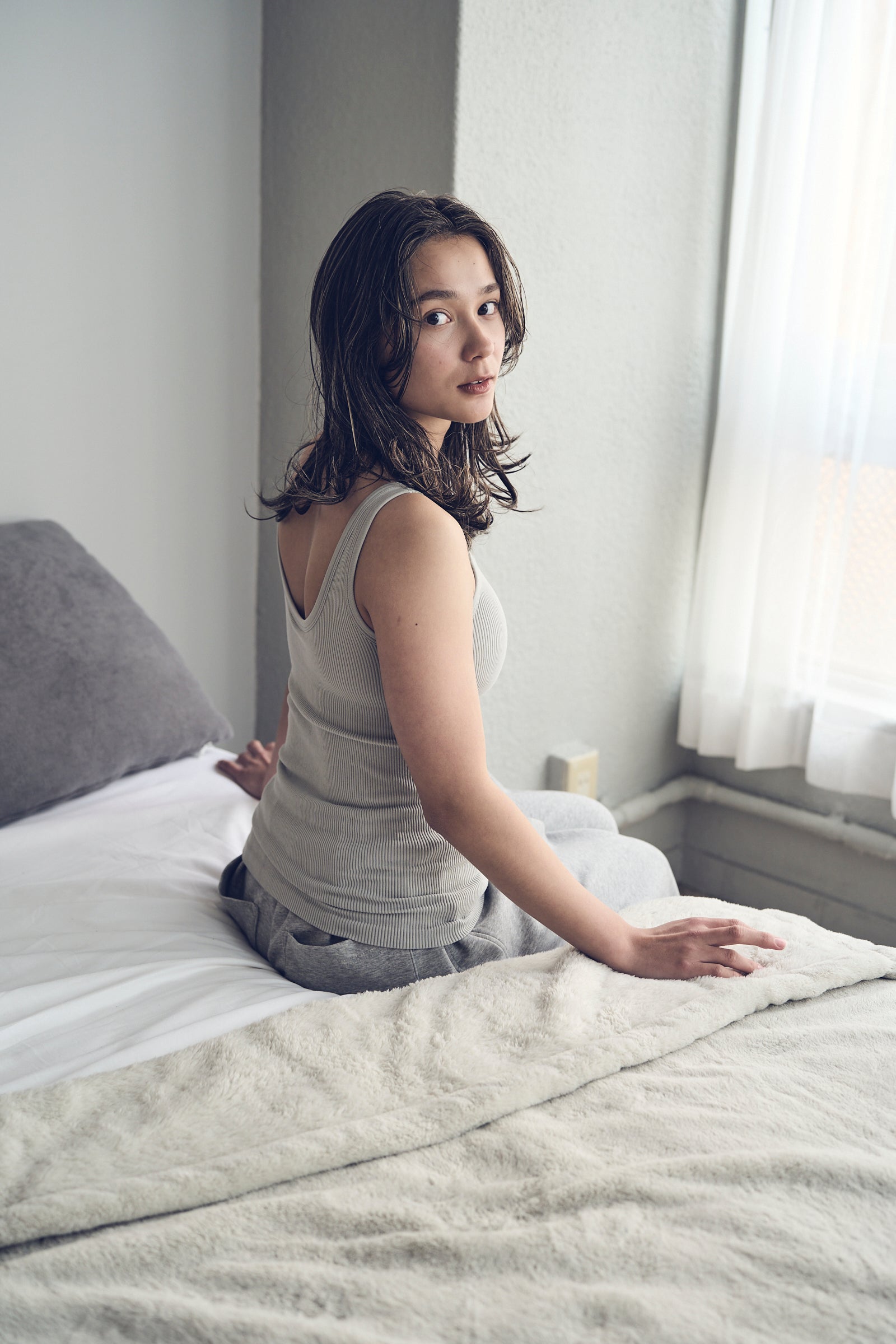 胸がしっかりホールドされるのに痛みを感じづらい、伸びが良く、柔らかくて気持ち良い素材。縫い目のない筒編みを採用しており、肌あたりにもこだわりました。