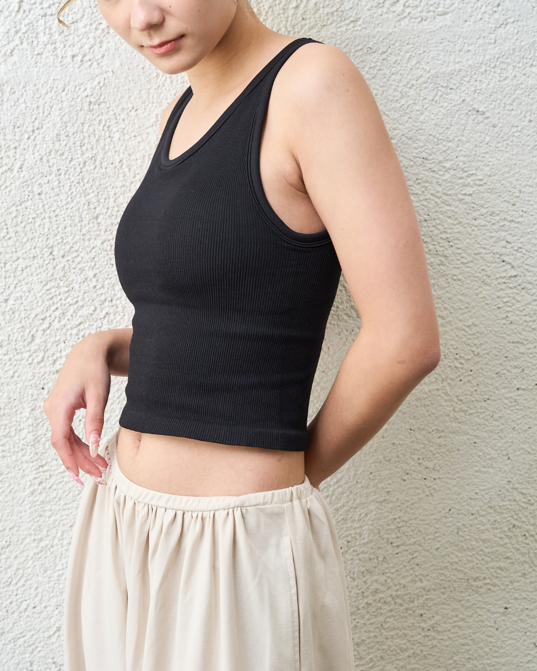 胸がしっかりホールドされるのに痛みを感じづらい、伸びが良く、柔らかくて気持ち良い素材。縫い目のない筒編みを採用しており、肌あたりにもこだわりました。